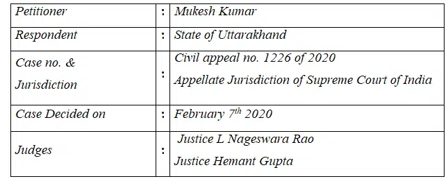 Case Brief on Mukesh Kumar v. State of Uttarakhand, Civil Appeal No. 1226 of 2020