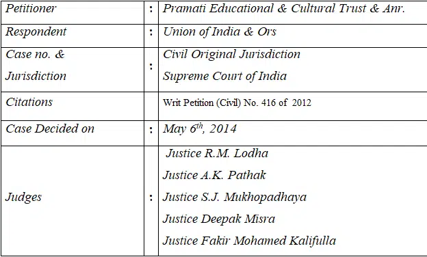 Case Brief on Pramati Educational & Cultural Trust & another v. Union of India & Ors