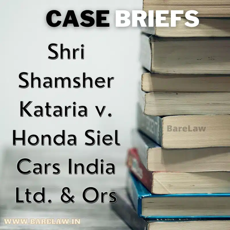 Read About Case Brief On Shri Shamsher Kataria v. Honda Siel Cars India Ltd. & Ors