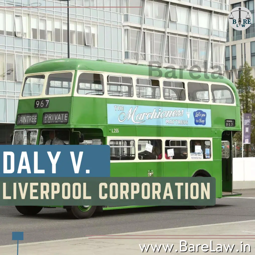 Liverpool Corporation was sued by the appellant Daly in Daly v. Liverpool Corporation for a cause of action against Liverpool City Council a corporate body that has no separate legal personality from the city council; however, it can sue and be sued like any other individual. It was about alleged negligence cases perpetuated by this corporation leading to personal harm or loss as per Daly’s claims which are also important since they focus on duties and liabilities owed by public bodies.