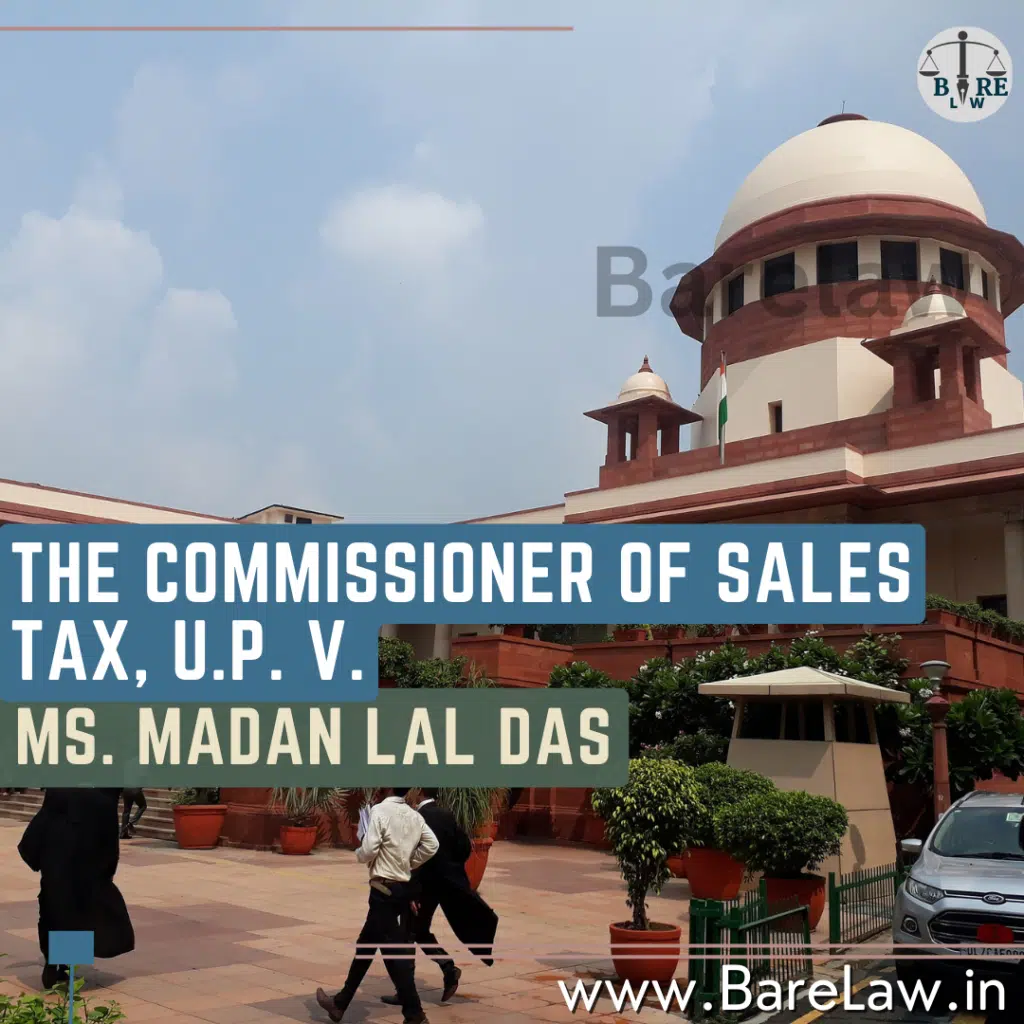 The judgment of The Commissioner of Sales Tax, U.P. v. M/s. Madan Lal Das & Sons, Bareilly, AIR 1977 SC 523 | BareLaw
